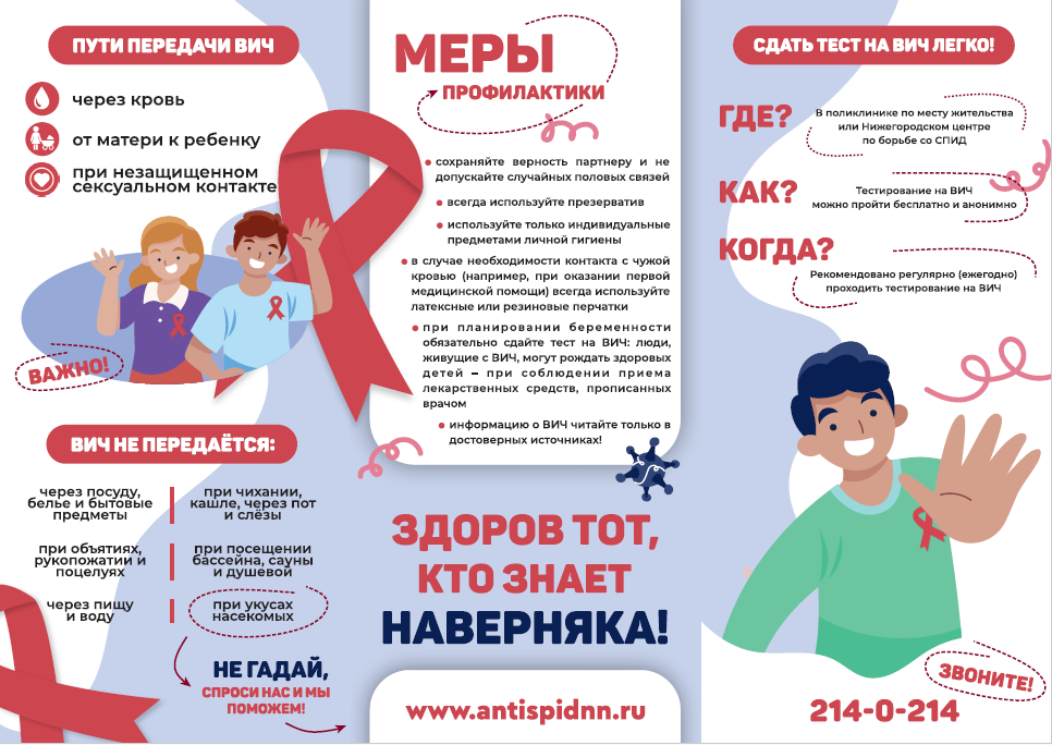 1 декабря в мире проводится День борьбы со СПИДом. Лишь объединившись, мир может остановить эпидемию! Лозунг «Преодолевая трудности, трансформируя ответные меры на СПИД», выбранный в 2025 году для проведения кампаний к Всемирному дню борьбы со СПИДом, как нельзя лучше отражает текущие вызовы и возможности в борьбе с ВИЧ/СПИД и напоминает, что прежние методы уже не всегда работают в новых условиях и требуют переосмысления. Глобальной целью борьбы со СПИД является полное искоренение ВИЧ-инфекции и прекращение пандемии СПИДа, а также улучшение качества жизни всех затронутых болезнью людей путем предотвращения новых случаев заражения, предоставления качественного лечения и поддержки, устранения дискриминации и стигматизации, а также развития устойчивых профилактических мер и исследований. В России для этого делается очень много: от проведения информационных кампаний, разъясняющих, где и как сдать бесплатный тест на ВИЧ-инфекцию, и что делать, если результат оказался положительным, до бесплатного лечения ВИЧ-инфекции. Информационная справка. По состоянию на 25.11.2025 года в Нижегородской области состоят под наблюдением 18 697 больных ВИЧ-инфекцией, из них лечением охвачено 17 772 человек, в том числе 234 ребенка до 18 лет. Преобладает половой путь передачи ВИЧ (82,5 % случаев). Напоминаем, основные пути передачи ВИЧ: половой, употребление ПАВ и от матери к ребенку. Закон РФ гарантирует ВИЧ-инфицированным медицинскую помощь. Любая помощь по медицинским показаниям ВИЧ-инфицированным оказывается на общих основаниях. Люди, живущие с ВИЧ, пользуются всеми правами, предусмотренными законодательством РФ в области охраны здоровья граждан. Дополнительно закон предусматривает лечение ВИЧ-инфекции: специализированную антиретровирусную терапию (АРВТ) государство предоставляет бесплатно. Все граждане РФ имеют право БЕСПЛАТНО пройти тест на ВИЧ в любом государственном учреждении здравоохранения по месту жительства или Центрах профилактики и борьбы со СПИДом. В Нижегородской области с вопросами по ВИЧ можно обращаться к специалистам Нижегородского Центра борьбы со СПИД по адресу г. Нижний Новгород, ул. Минина, 20/3Е или по телефону доверия 8 (831) 214-0-214 доб. 847. По юридическим вопросам тоже можно получить дополнительную информацию, обратившись к юристу по тел. 8 (831) 214-0-214 доб. доп. 807. Берегите себя и будьте здоровы! |