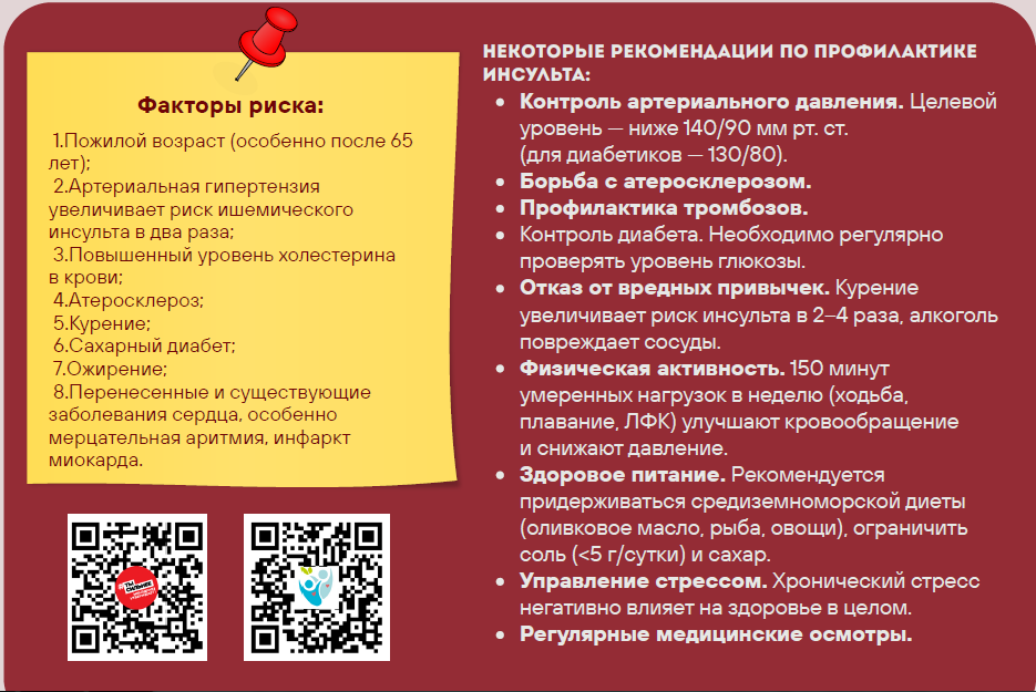 Ежегодно 29 октября отмечается Всемирный День борьбы с инсультом. Этот день обращает внимание каждого из нас на необходимость своевременной профилактики инсульта.